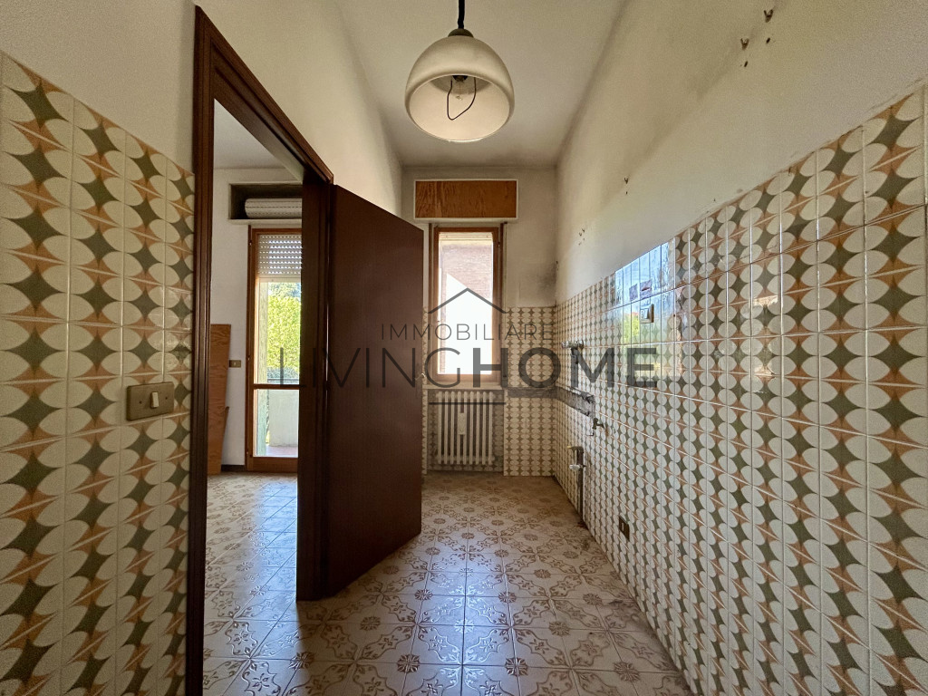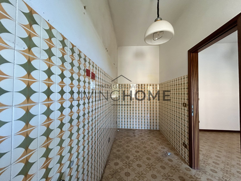 L’ingresso conduce a un pratico disimpegno che separa il luminoso soggiorno dalla cucina abitabile.