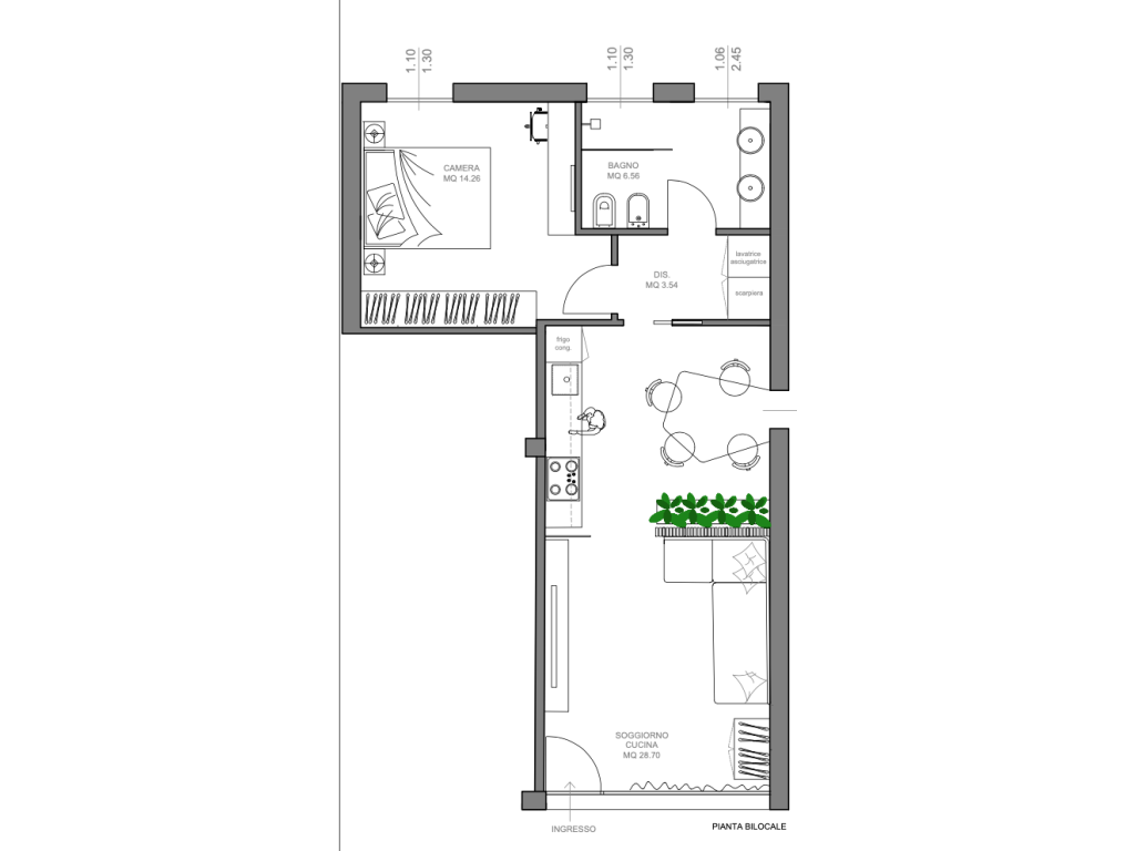 Soggiorno Cucina open space - Camera da letto matrimoniale - Bagno