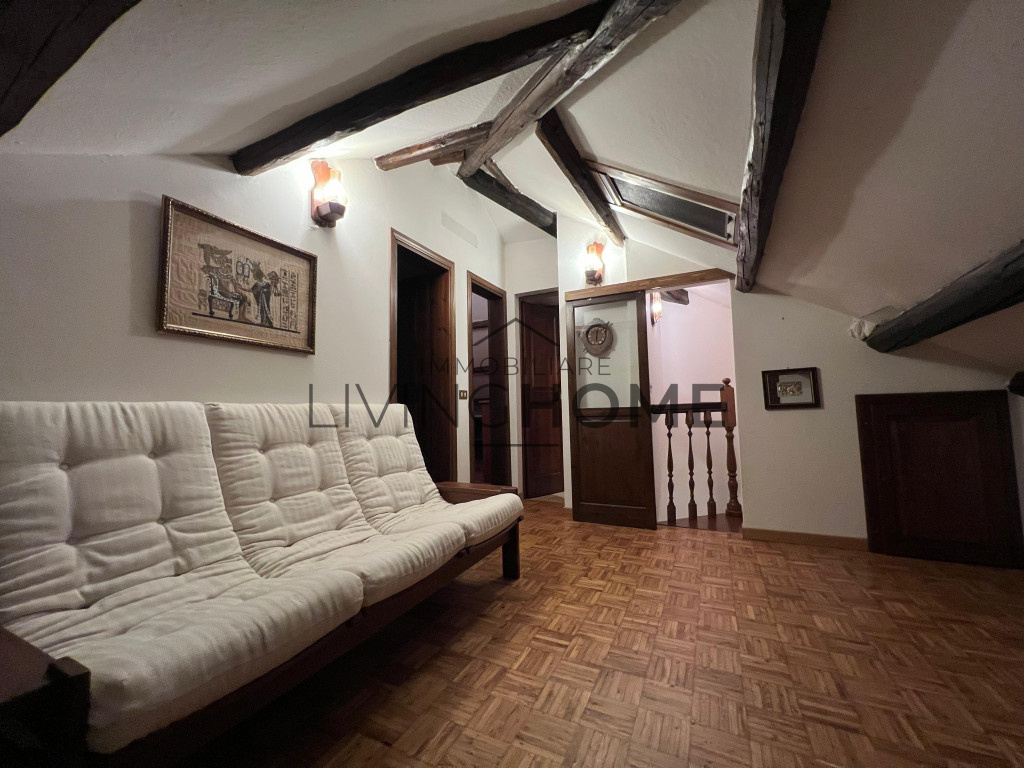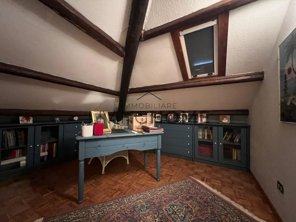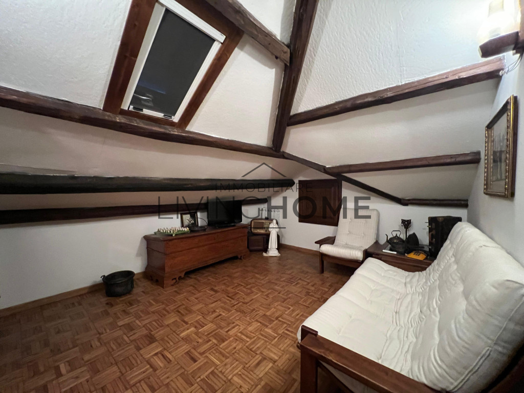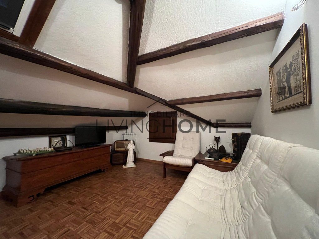 L’immobile si sviluppa su più livelli e si presenta così composto: piano terra rialzato offre una distribuzione funzionale degli ambienti, con zona giorno e cucina separate, due camere da letto matrimoniali e ampio bagno con vasca; tramite scala interna si raggiunge piano superiore dell'abitazione, che si presenta come sottotetto diviso in 3 vani, adibiti reciprocamente a studio, camera da letto e bagno